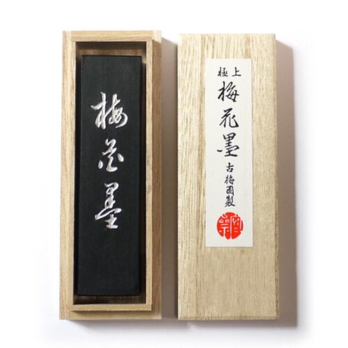 超微粒子の最高級油煙を用い、当園の墨匠が古梅園家伝の製法に従い、精根を込めてつくりあげた、墨の中の最高級品です。