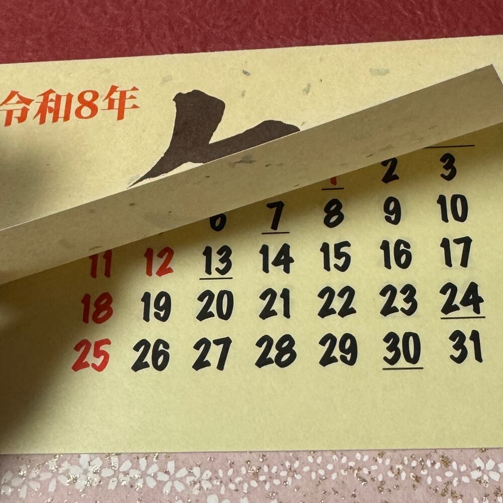 2026年(令和8年)のカレンダーが付いた壁掛けできるミニ色紙(寸松庵)掛けです。